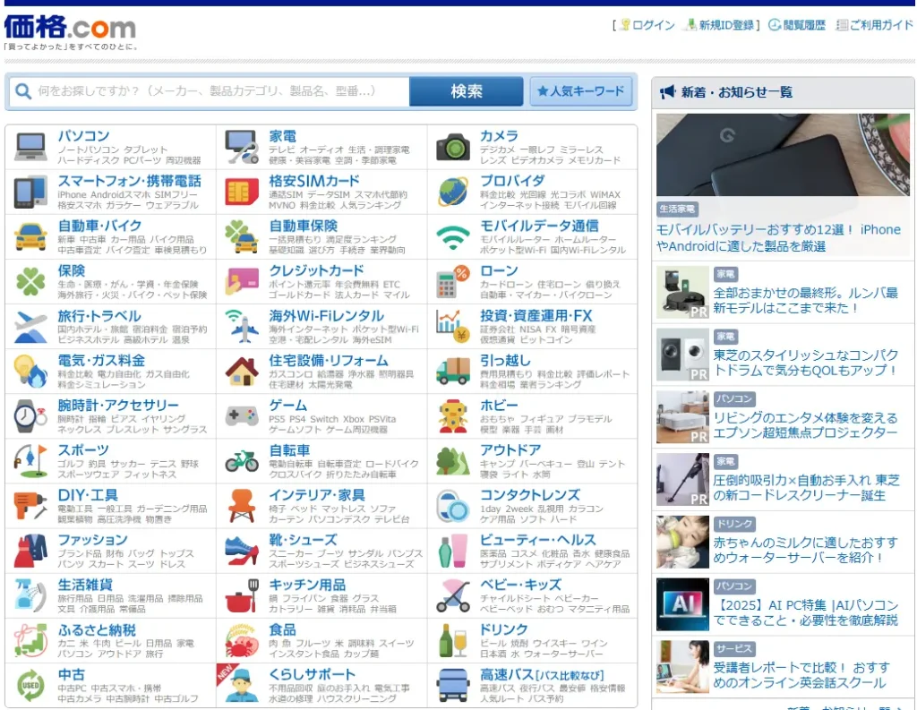 みんなが大好き価格.com。わたしも一番最初はこのサイトで製品を比較します。