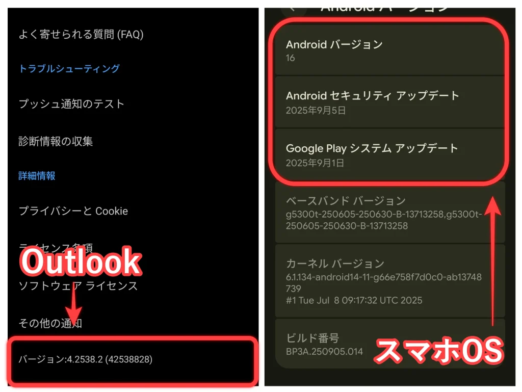 【補足情報】Outlookアプリ と スマホ のバージョン情報